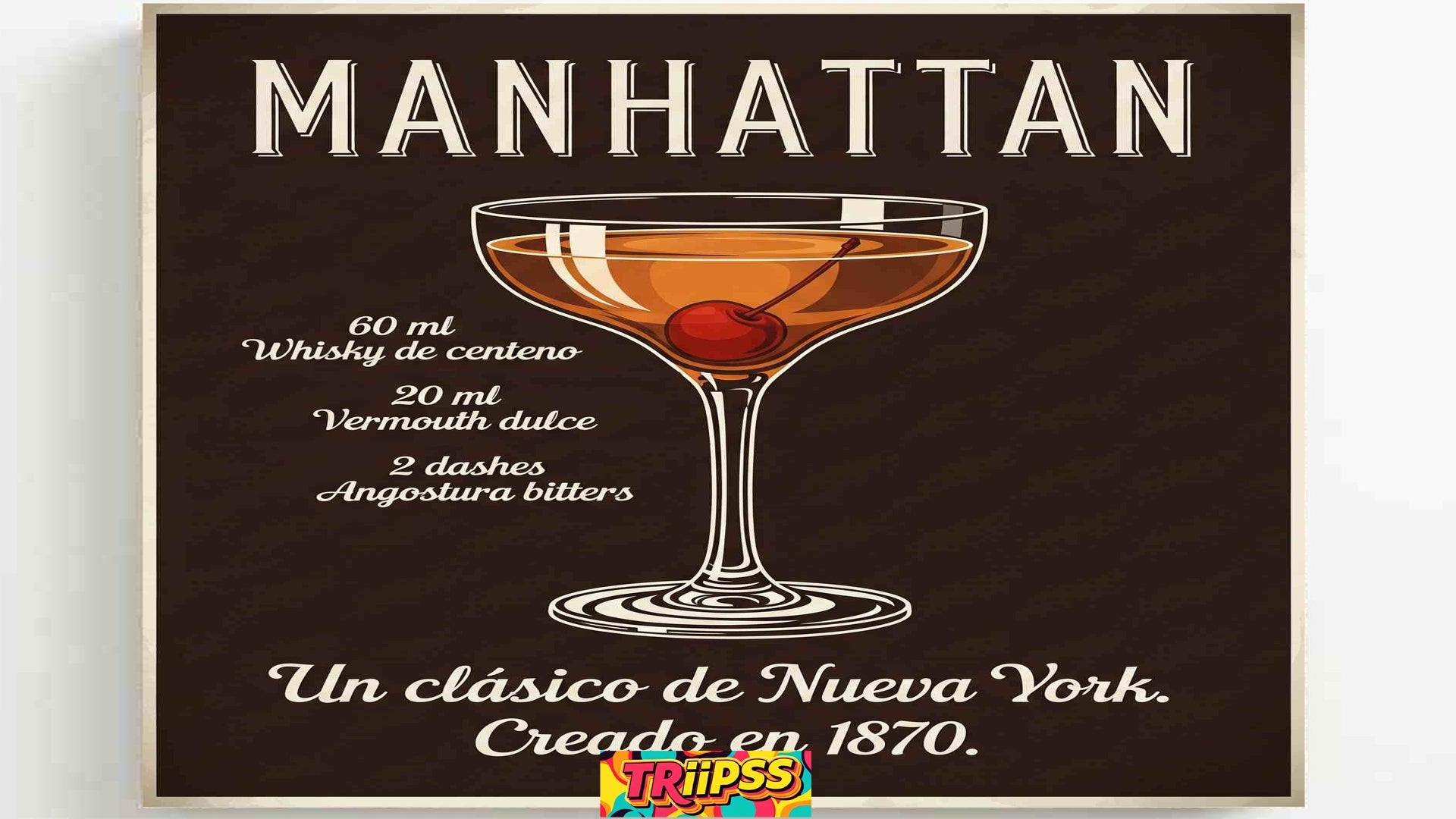 ¡Dale a tu espacio el toque clásico y sofisticado de la coctelería neoyorquina con nuestro póster digital de Manhattan!