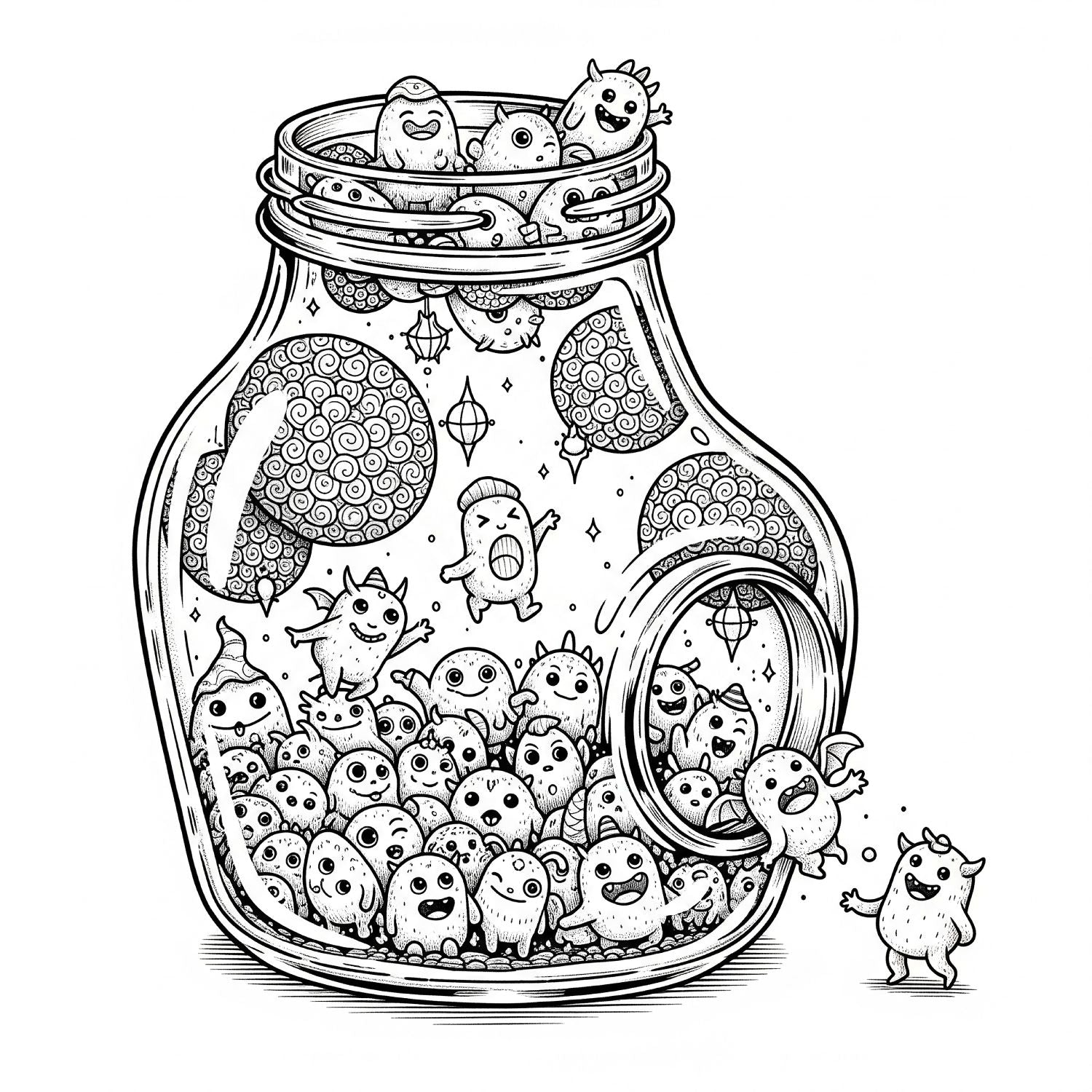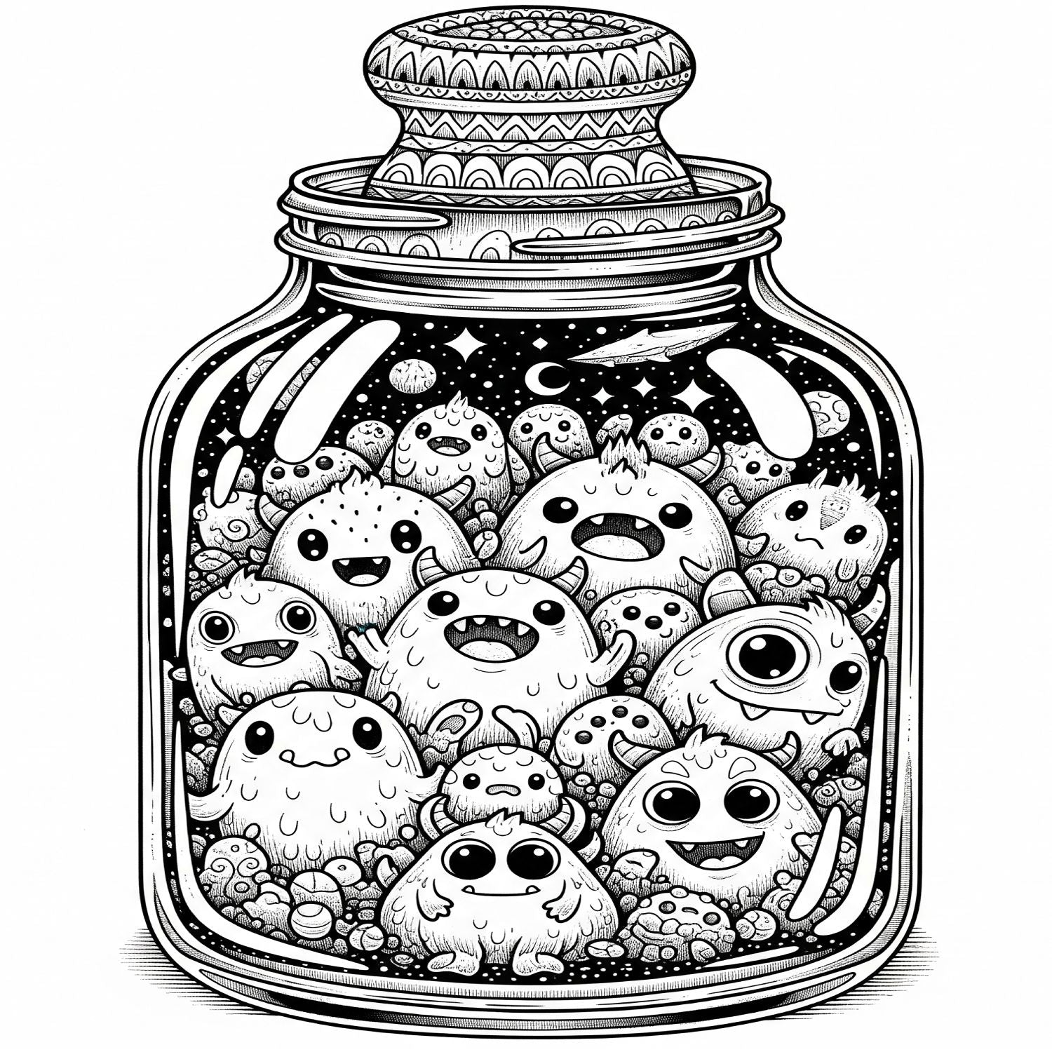 Pack de Ilustraciones para Colorear | Jar Monsters - 15 Diseños en A3 (300 DPI) para Imprimir