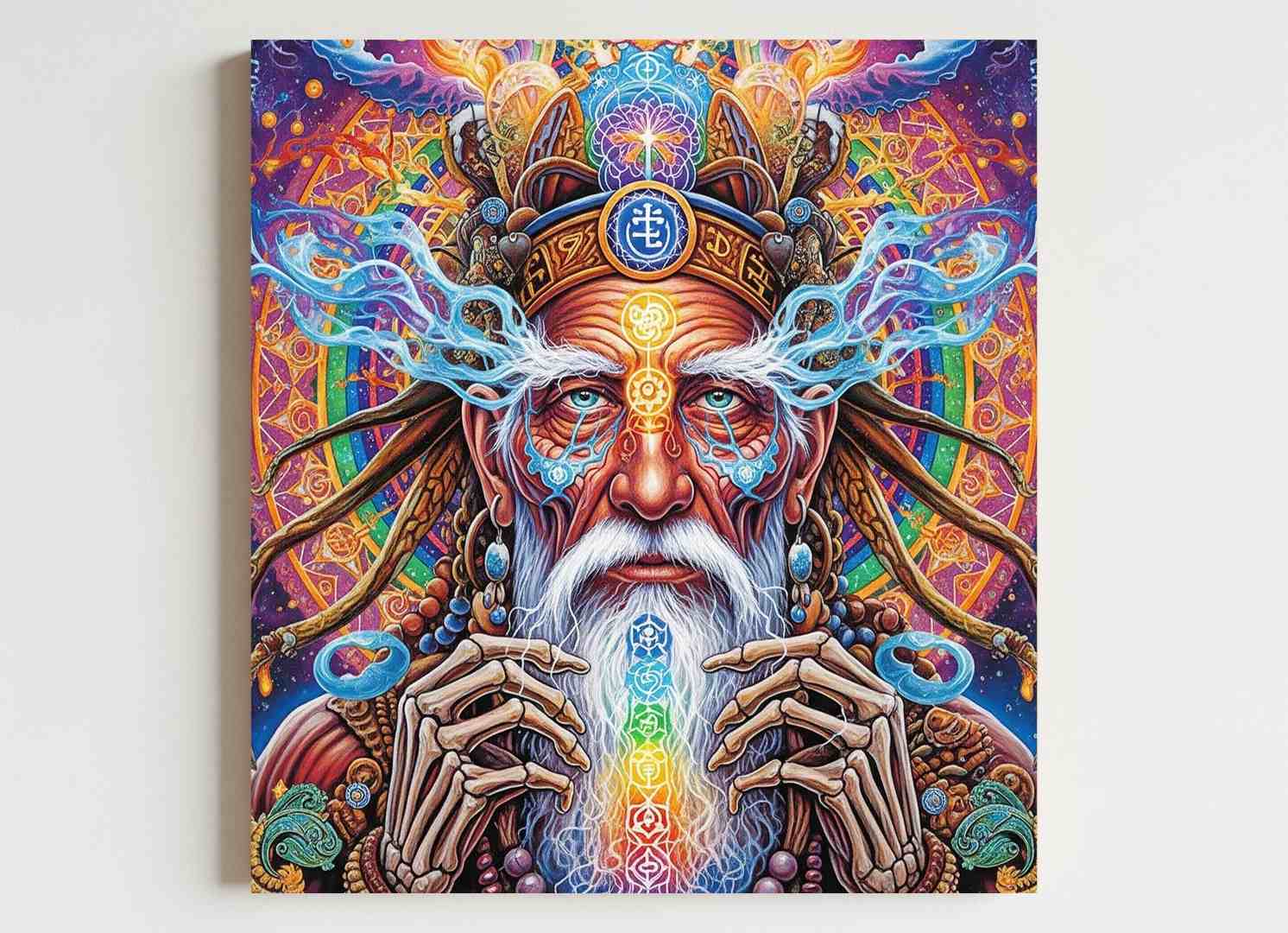 Diseño Exclusivo: Una pieza de arte original que captura la esencia del chamanismo y la energía, con una estética visualmente impactante.